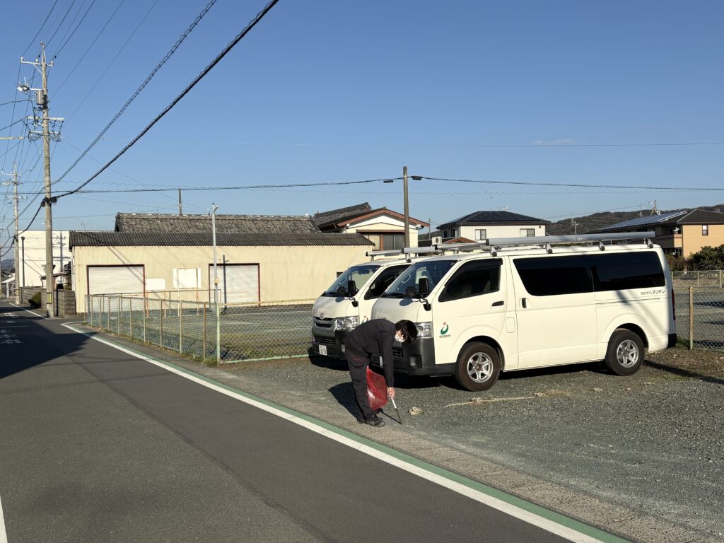 総務部の山路です。本日、近隣清掃・交通安全啓蒙活動を行いました。近隣清掃しているスタッフが、近所の方から『ありがとう』と感謝の言葉を頂いたそうです。我々もこの地域に事務所を構え仕事をさせて頂いておりま …